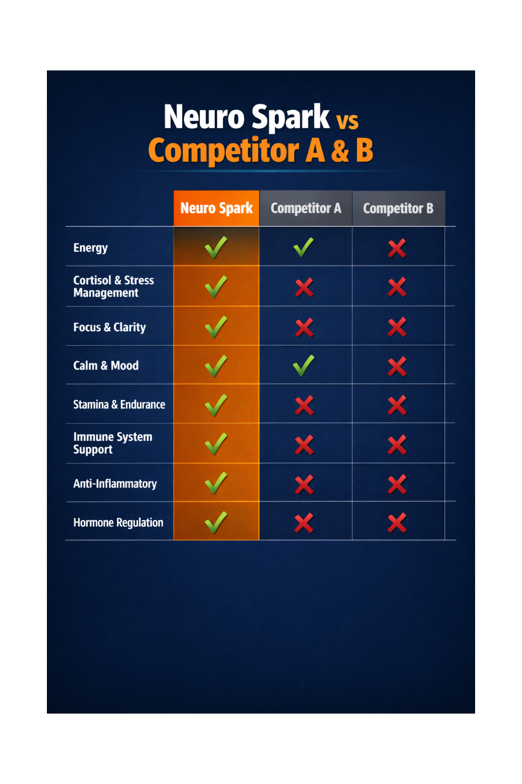 Neuro Spark Ignite is designed to support steady mental focus, balanced daily energy, calm alertness, and consistent performance throughout the day.